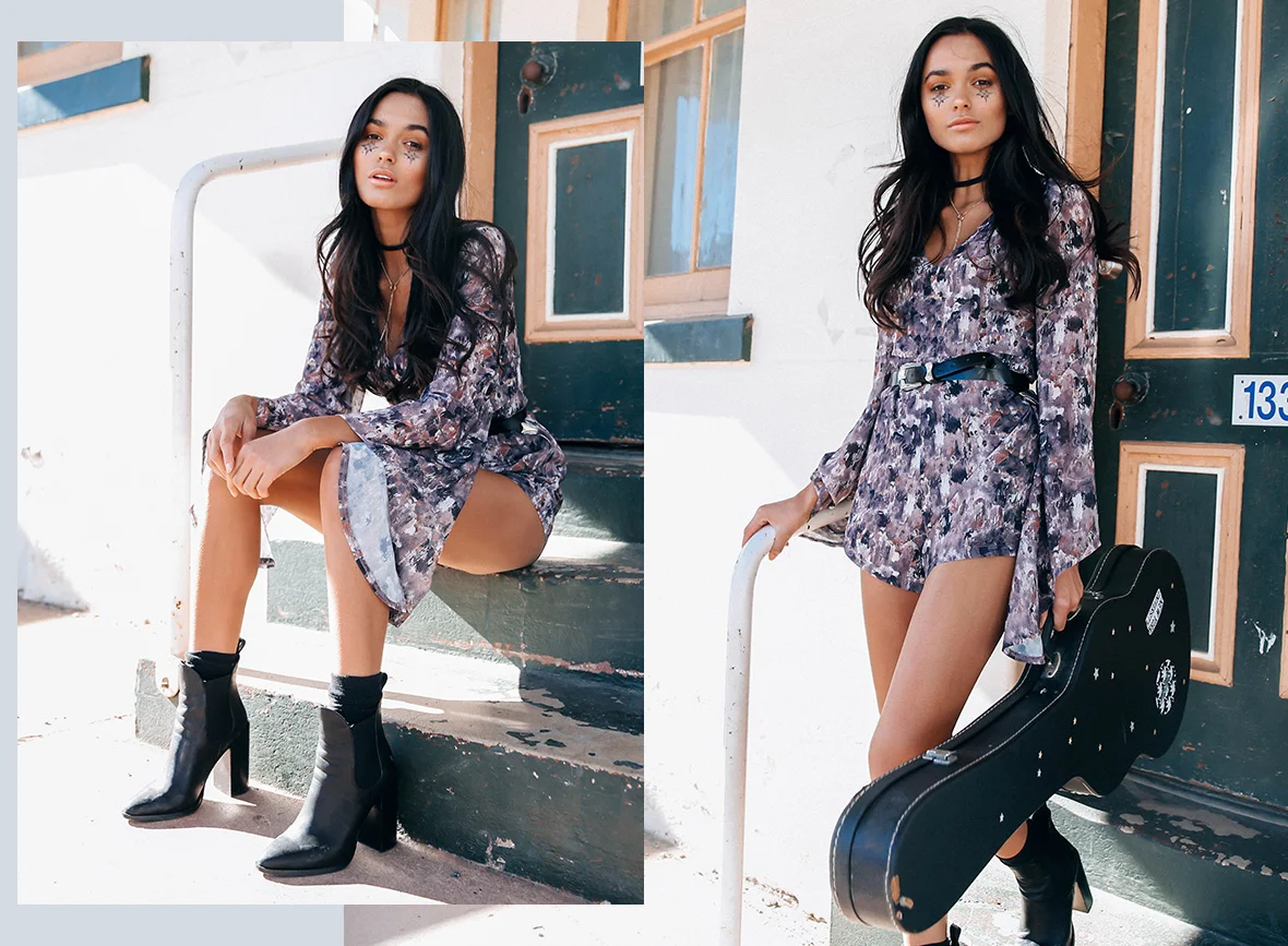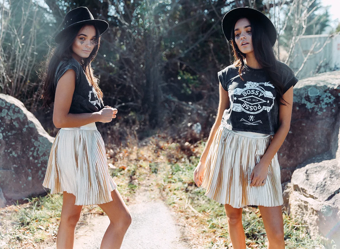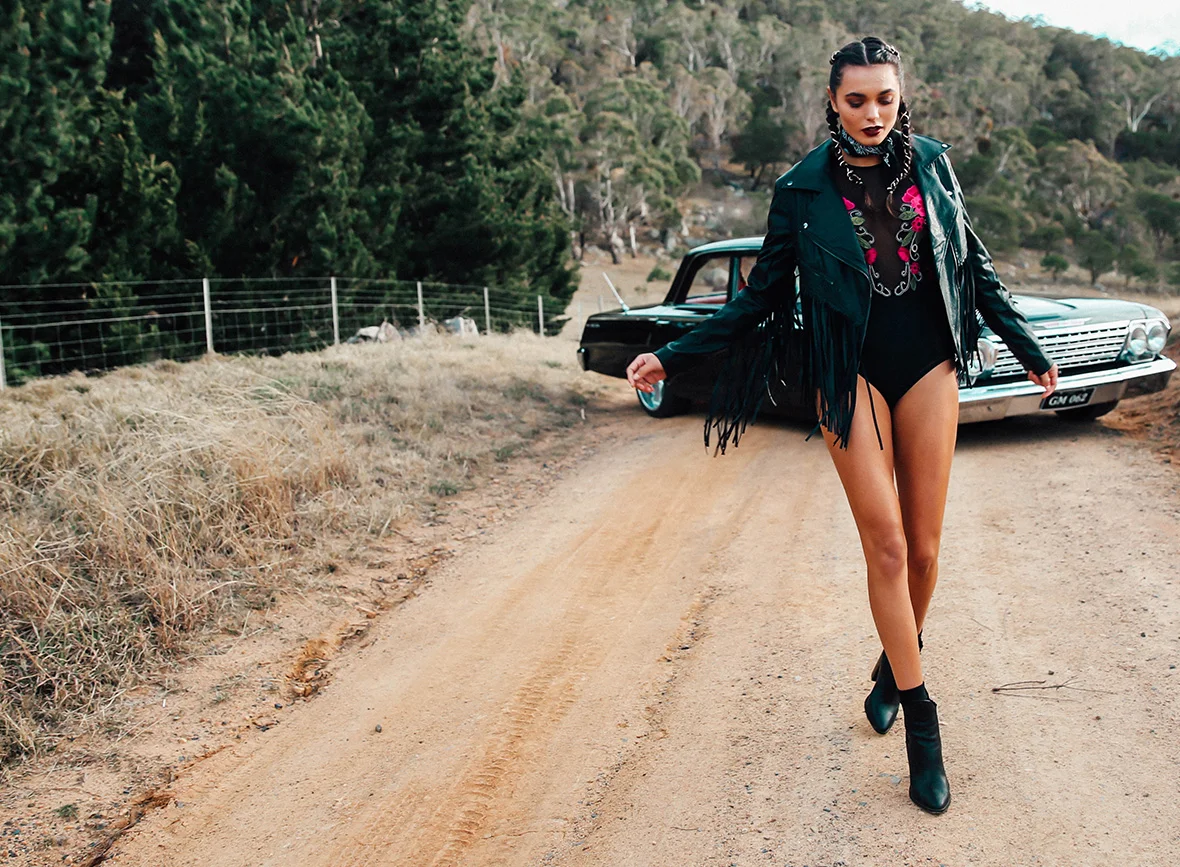 Oooohhh yeahhhh! New Bossy The Label has just dropped! For the girl who dresses for herself. The free spirit chasing the sunset down a road to nowhere. Colourful florals, metallics and silks, roughened up with acid wash and leather. Think tough vs. pretty. Don’t be afraid to rebel.