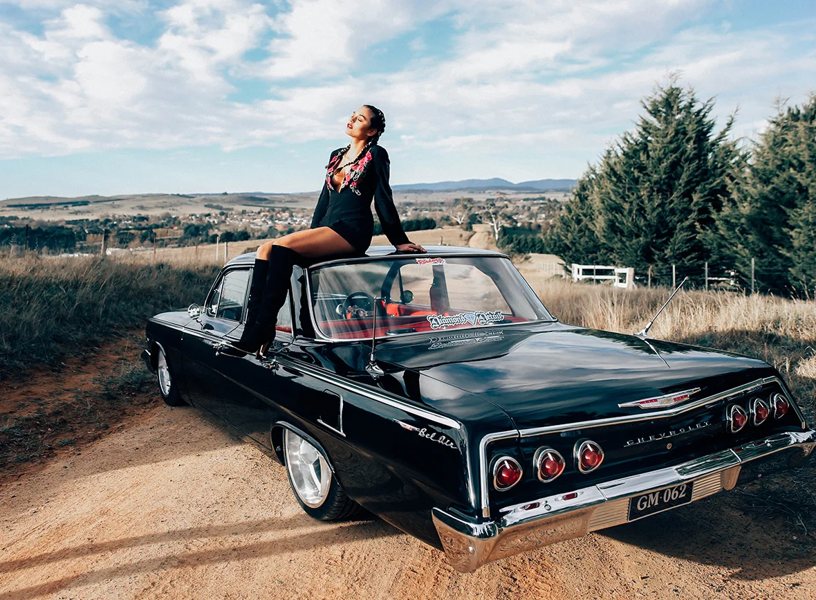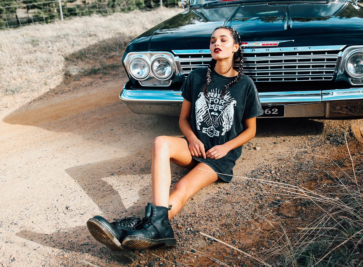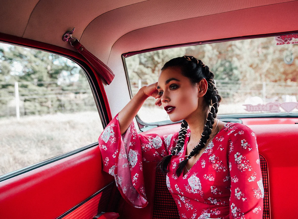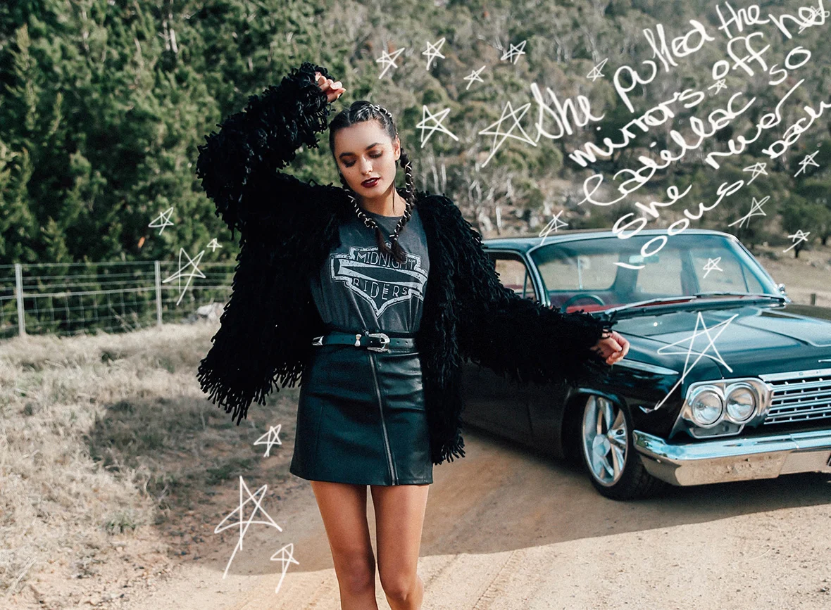 We took a road trip down to Braidwood. A little country town just 4 hours out of Sydney. It took us back in time to the 19th century with its historical architecture and long windy dirt roads. The open plains and rolling hills, were a picture perfect setting for Solange to jump into a Ford Mustang and hit the road to no where.