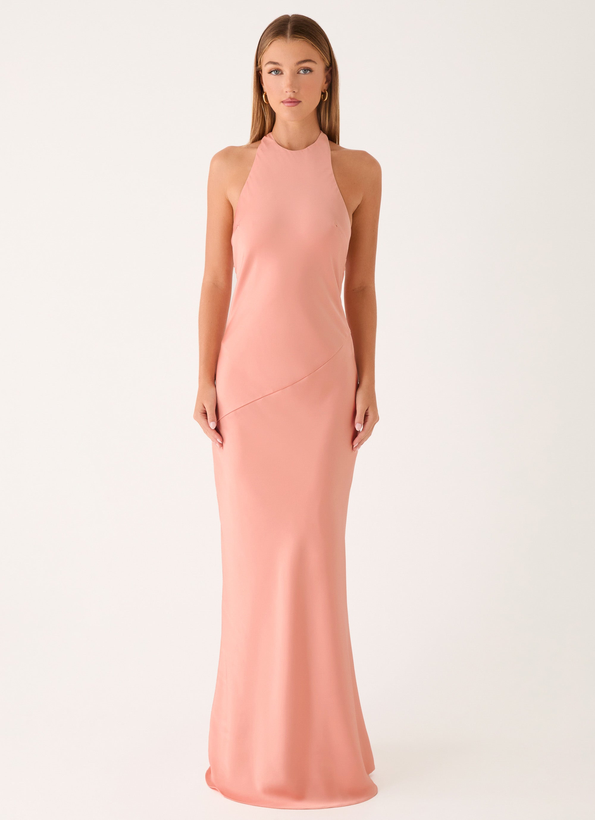 The Jasmanie Maxi Dress is designed to elongate the silhouette with its floor-length cut and halter neckline featuring a thick adjustable strap. The low back and smooth satin fabric create a sleek, elegant finish, while the fully lined design and side invisible zipper ensure comfort and structure.