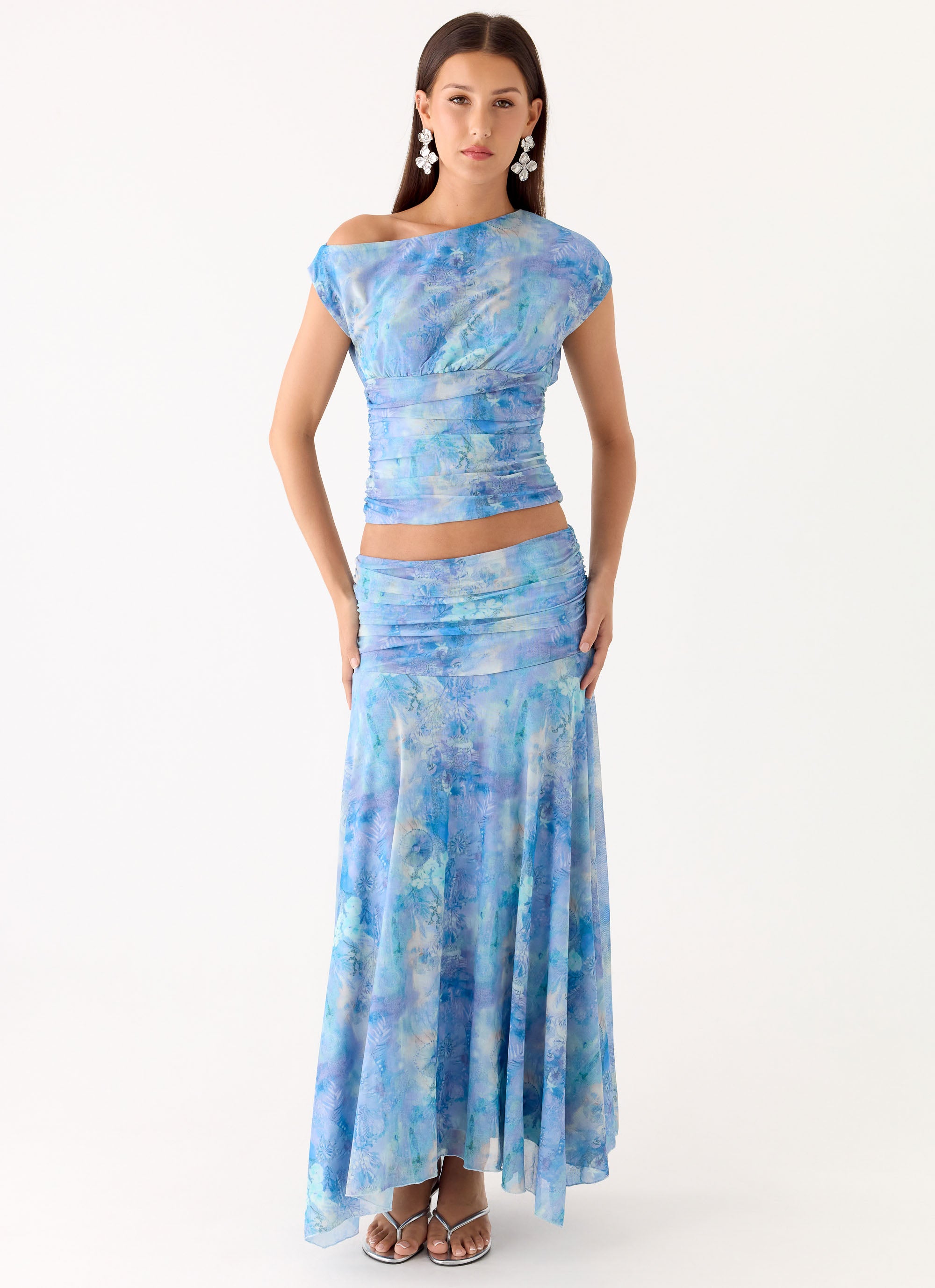 Peppermayo Exclusive - Liana Ruched Maxi Skirt - Aqua Paisley