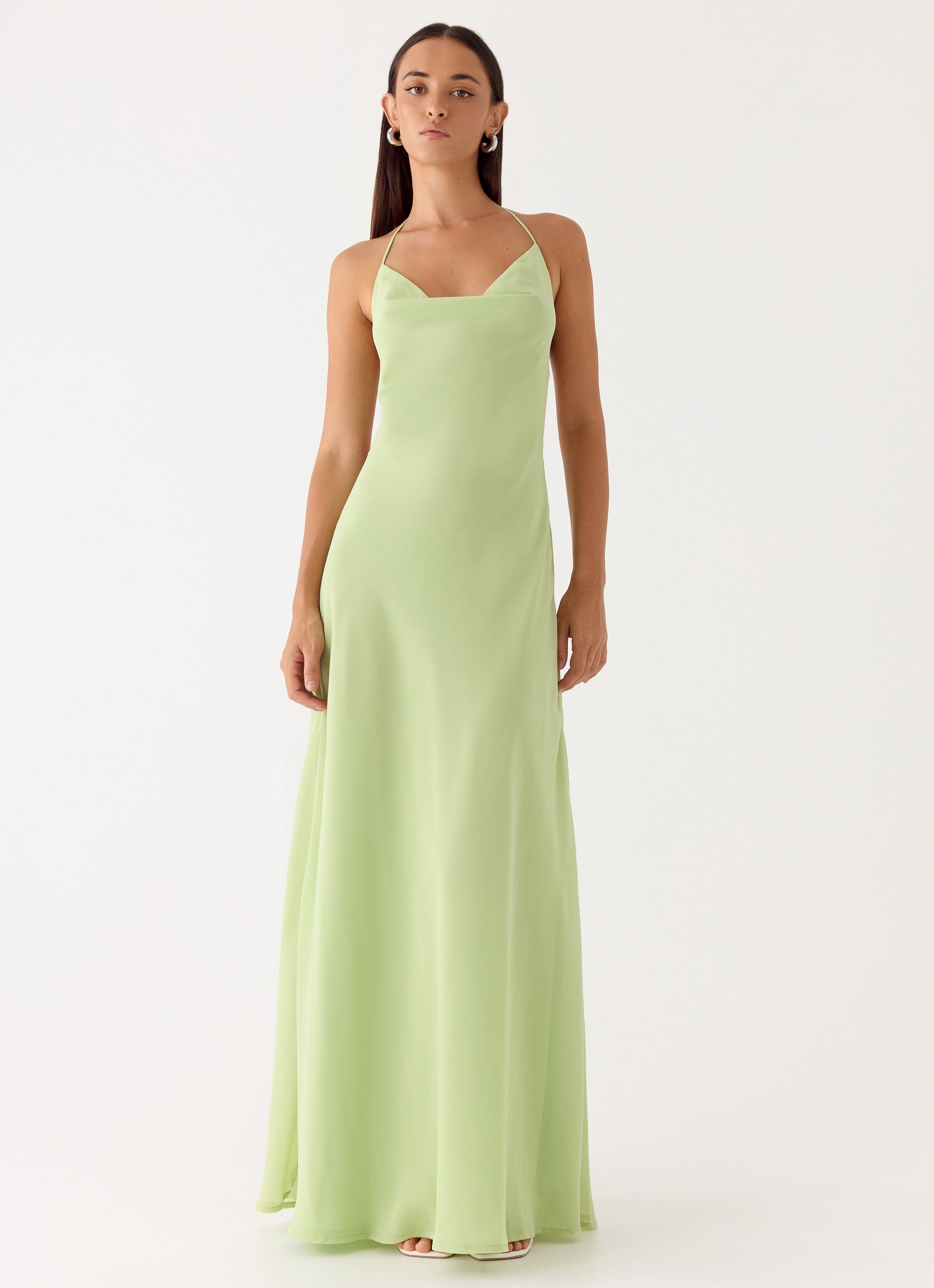 The Morning Crush Cowl Maxi Dress is made for golden hour moments and evening soirées. Featuring a front cowl neckline, a low back, and detachable beaded halter straps, this maxi dress offers versatile styling and a flowing, editorial silhouette.
