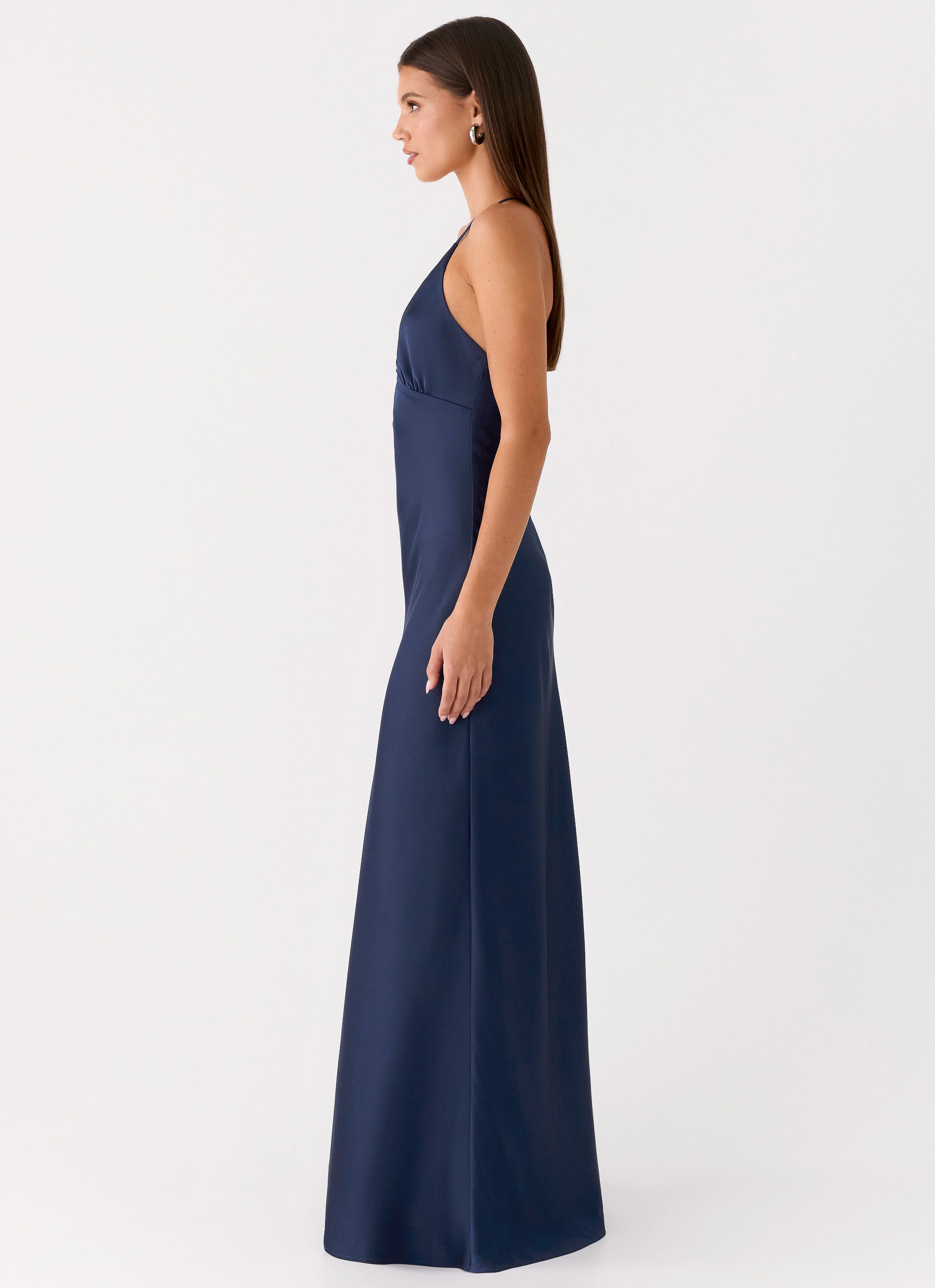The Sundowner Maxi Dress is made for evenings that linger in the glow of the sunset. Crafted from a luxe satin in a sophisticated deep navy, this silhouette features a flattering V-neckline and intricate ruched underbust detailing. With its sultry low back and elegant, long-fitting profile, it offers an effortlessly refined look perfect for beach-to-bar moments and golden hour soirées.